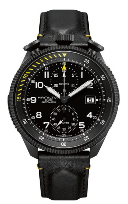 Takeoff承襲B-52機身的暗黑塗裝,以鎗灰色錶殼與黑消光面盤,搭載少見的牛頭型(Bull Head)大計時按把,營造出美式鐵鷹部隊的豪邁基因。品牌設計團隊更依照飛行員的操作便利思維,透過旋轉錶圈即可轉動面盤大傾角時速外圈,藉此換算飛行時速與燃料耗損,展現機械機芯對飛行員的任務應用性。Takeoff另一大話題賣點則是旋轉式的裝卸裝置,讓Takeoff變身成為手持式碼錶與座艙飛行鐘的多用途時計。讚賞漢米爾頓在飛行手錶領域的卓越不單單只有美國軍方;瑞士航空救難隊(Air Zermatt)的飛行直升機與機組人員,在救難任務中皆配備Takeoff手錶作為任務配錶。