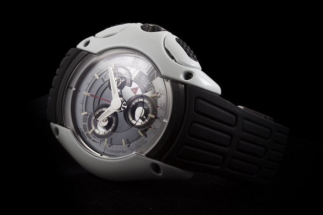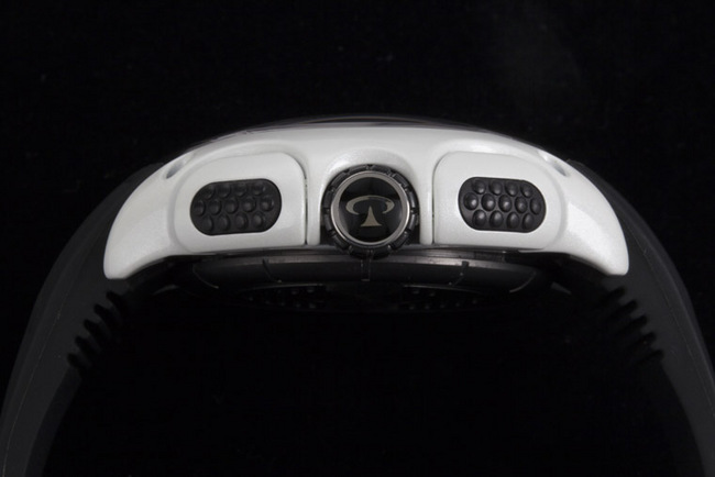 ▲ 大器的49mm錶殼以流線感十足的造型設計所呈現,搭配上特殊處理的防滑按鍵,讓配戴者操控起來也相當順手。
