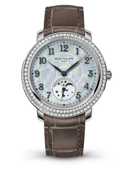 ▲ 百達翡麗「Celestial」系列新款白金6104G時計手錶,整只手錶對比色澤,展現錶面設計之美。