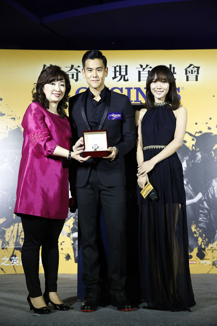 ▲ 彭于晏於黃飛鴻首映會現場捐出獲贈的浪琴表並簽名於錶盒上