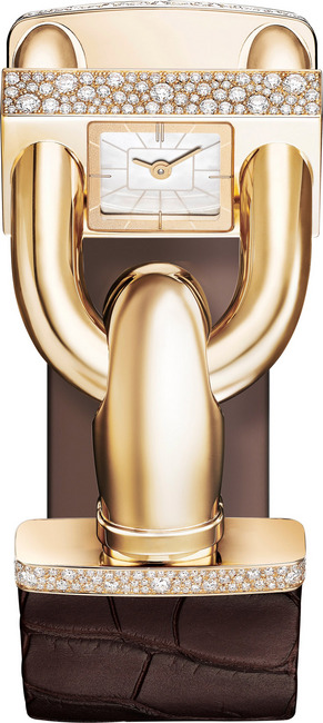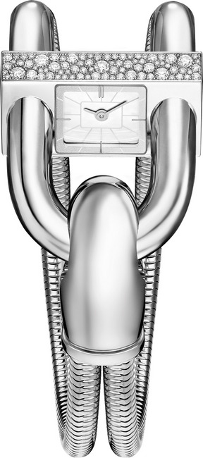 極致時尚的Cadenas Sertie鑲鑽手錶備有黃K金及白K金款式。錶殼頂端 及鱷魚皮錶帶飾件以雪花式鑲嵌鑽石,炫彩奪目動人。 Cadenas Sertie鑲鑽手錶亦備有金質錶鍊版本,錶殼頂端同樣飾有雪花式鑲嵌鑽石。其雙圈圓柱形錶鍊獨特非凡,呼應原設計細緻優雅的珠 寶美學。以渾圓嫵媚的弧線勾勒的Cadenas Sertie Bracelet Or金質手鍊鑲鑽手錶,備有白K金及黃K金兩個臻美款式。