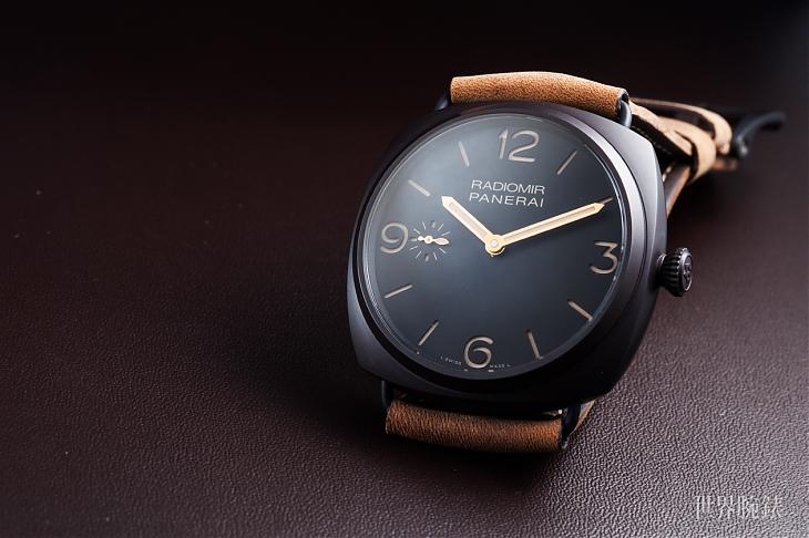 經典棒狀時、分針以金色設計而成,黝黑的錶體是沛納海獨家專利複合材質Panerai Composite®複合材質,簡約小三針的配置在Radiomir系列目前是唯一一款如此佈局的PAM00504,搭配俐落的錐形錶冠和沛納海專利的線形錶耳,再以棕色面盤入色,如果你是重度沛迷,外型這麼上火,想必它早已列入你的收藏清單。