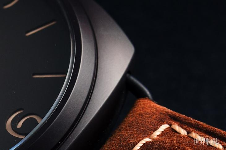 各種複合材質與創新物料是沛納海的拿手戲,在PAM00504身上也可見一斑,譬如錶殼所選用的Panerai Composite®複合材質,就是沛納海獨家技術所煉製出的錶殼。這種合成陶瓷材質不僅比一般陶瓷輕巧,在技術層面上需要投注的細節較一般材質來說難度更是提高許多,Panerai Composite®複合材質首先需要經過「電化」作用,因其中涉及「鋁」的微妙變化因子,因此在這樣高難度的技術鍊就而成的Panerai Composite®複合材質,比起一般的不鏽鋼材質而言,不僅更耐腐蝕,在外型上也鍛造出黝黑深邃的外型,親見實錶以後,更可輕易地與其他材質的錶殼一較高下,摸起來相當有質感!