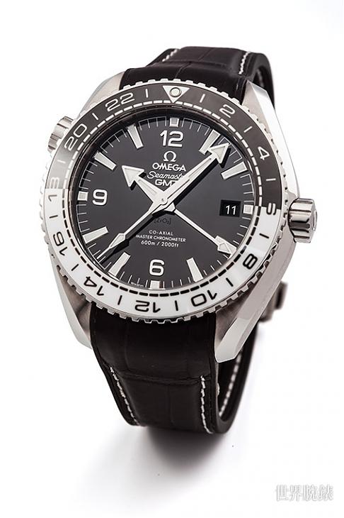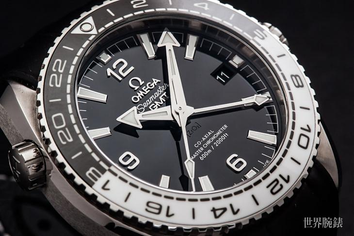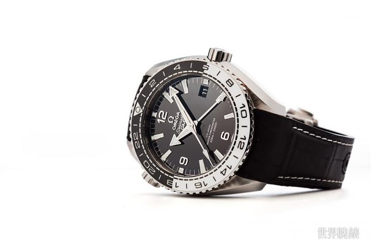 ▲OMEGA海馬Planet Ocean GMT腕錶整體設計以黑白色系的強烈對比色方便方便佩戴者讀時,此外防水深度達600m也足以應付旅行中的水中運動。