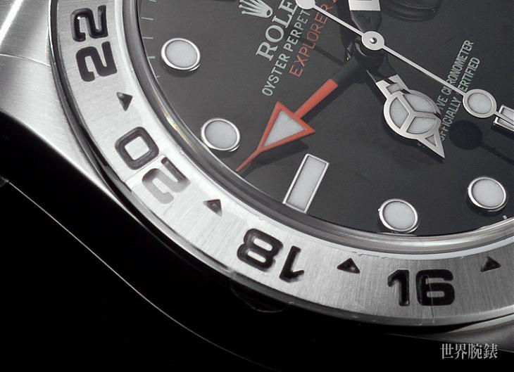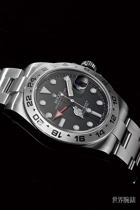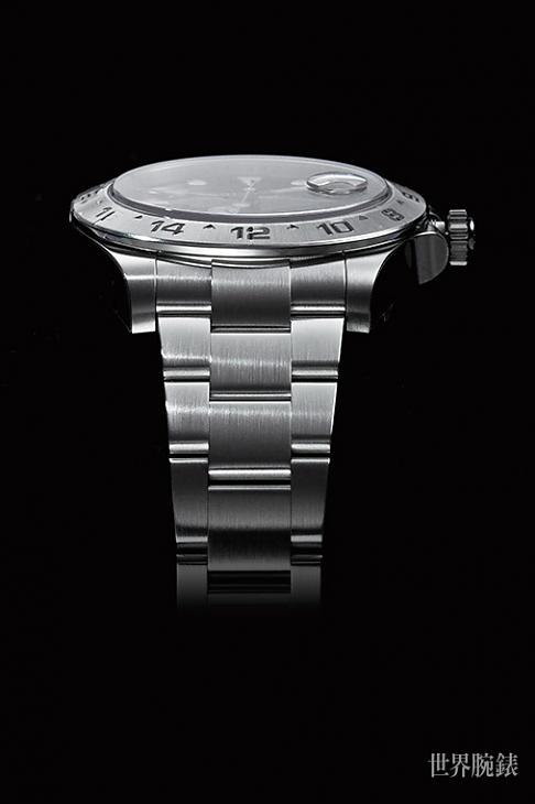 當然從數據分析會輕易發現錶徑的尺寸變大了,初代Ref.1655、二代Ref.16550,以及三代Ref.16570皆為40mm,或許這是因為第四代Ref.216570其機芯內部的日期轉盤向外擴展所致,而這也符應勞力士2011年的發展方針,除了Explorer II系列加大2mm外,譬如Oyster Perpetual Datejust II亦有加大錶徑。如果將初代和四代的錶殼兩相比較,除了造型上幾乎可說是完美移植了原有設計之外,其中亦有些許改變之處,譬如錶耳和錶冠的護肩處皆有加厚和加寬,讓用家佩戴起來更有份量;而錶圈也從三代的可旋轉錶圈變成不可轉的固定錶圈;另外錶殼材質更採用勞力士研發的904L不鏽鋼,其材質比起316L不鏽鋼來說,除了硬度增強、抗腐蝕,在錶殼進行打磨工序時能表現出更有質感的光澤,因此在製作上也比316L不鏽鋼來的困難許多,是勞力士傾盡全力打造完美的證明。