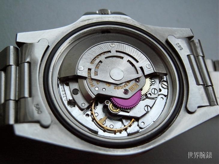 初代所搭載的機芯尚未具備快速調校日期的功能,錶款底蓋為旋入式實心底蓋,將其打開後可看見俗稱「紅肉」的二番車零件,此可提高機芯本身的耐磨度,讓走時更趨精準。