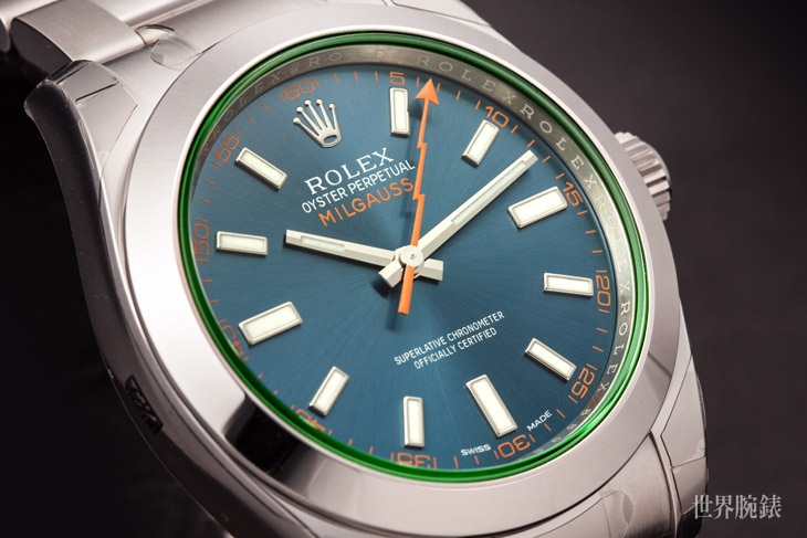 ▲ Milgauss設計的獨特之處,就是從側面看玻璃邊緣會有一道綠色散出,也因此被稱為「綠玻璃」。