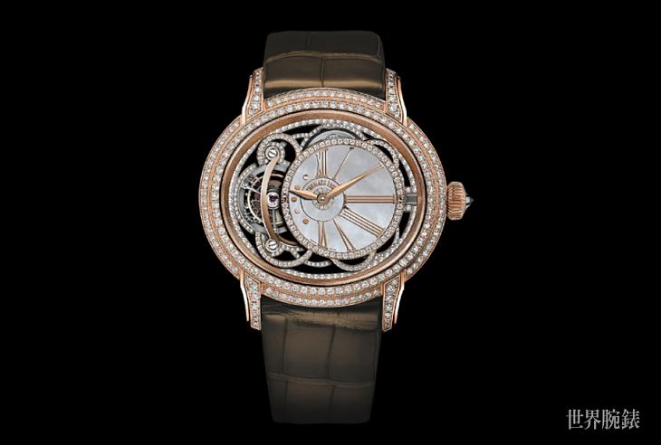 ▲AP千禧陀飛輪錶,偏心式面盤鑲嵌脆燦鑽石,以18K玫瑰金打造的橢圓型錶殼一展千禧系列經典之美