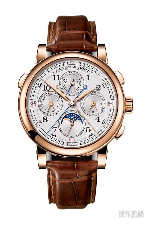 玫瑰金材質/L101.1手動上鍊機芯/時、分、小秒、日期、星期、月份、閏年顯示/萬年曆功能/雙追針計時碼錶功能/月相顯示/動力儲存顯示/藍寶石水晶錶面、透明底蓋/錶徑41.9mm/參考價:NT$ 6,260,000