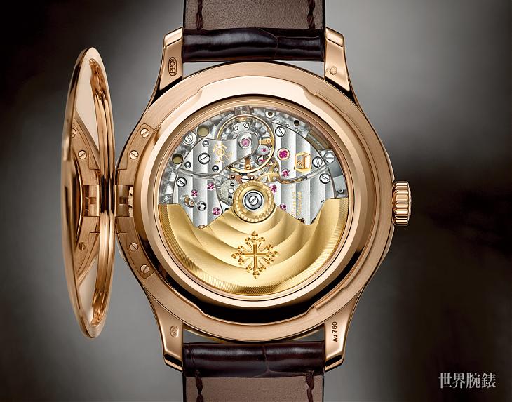 ▲PP的Ref.5227R具有品牌著名的軍官式開蓋錶背,其外蓋鉸鍊的設計隱蔽性極高。