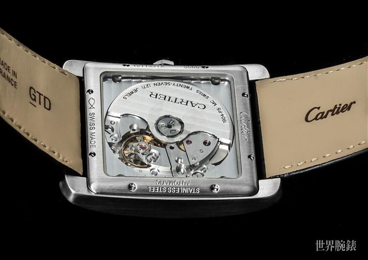 ▲2013年卡地亞推出的Tank MC腕錶,其透明底蓋少見地完整露出機芯及其周遭夾板。