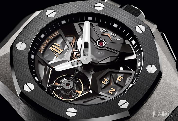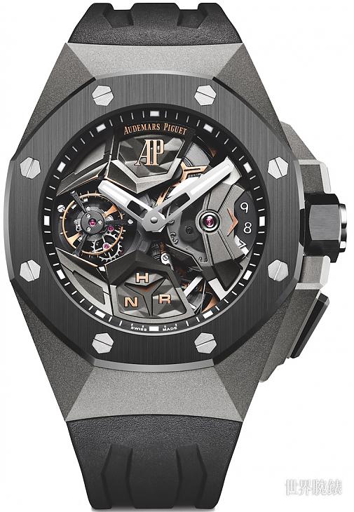 愛彼推出新一代的皇家橡樹概念GMT錶款,首度內置飛行陀飛輪,並採用全新機芯與面盤設計。9點鐘位置的飛行陀飛輪與前代皇家橡樹概念陀飛輪GMT款一樣,帶有相同的動力儲存和頻率(將近十日的237小時動力儲存,頻率3赫茲)。