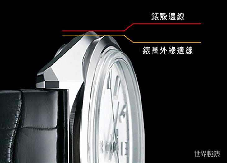 帶有保護錶冠的作用,錶殼線條宛然天然的護肩設計,使佩戴者不易因碰撞而旋動到錶冠。