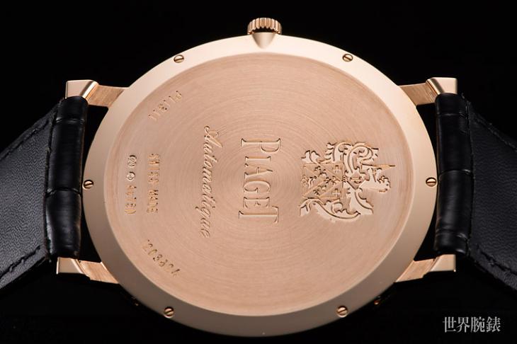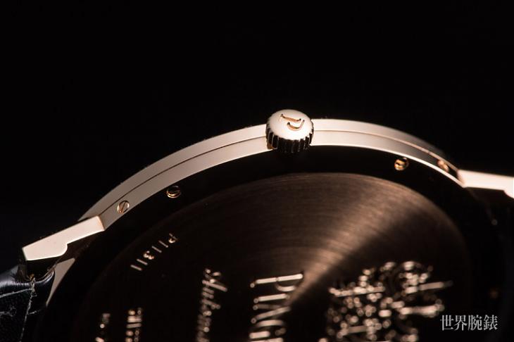 ▲一如900P的特色設計,Altiplano Ultimate Automatic也是把機芯與底蓋合而為一,從龍芯處略為凸起可以發現機芯的薄度甚至比錶冠直徑更薄。