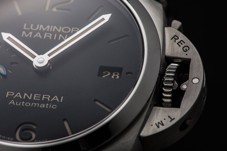 ▲日期顯示是定義P. 9010作為泛用款式基礎機芯的一個重要條件。相較於44mm的723,42mm的722面盤空間較擠,因此3、9兩個時標數字在這裡都改成棒狀,不過同樣是三明治結構的。