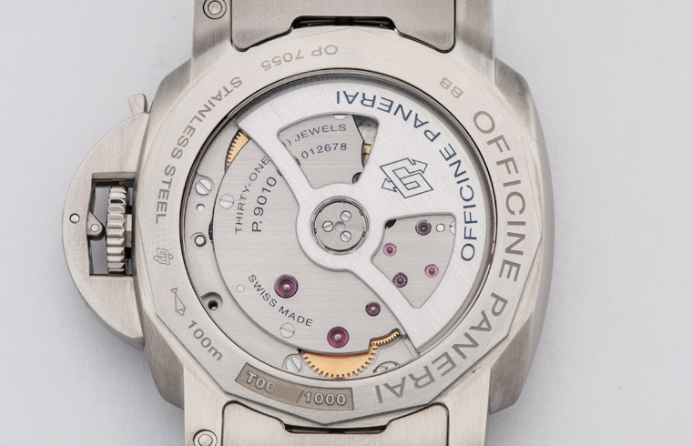 ▲P. 9010機芯現在已經逐步取代9000系,成為沛納海中等尺寸泛用款式的基礎型號,它除了在性能上改成了有助於穩定度的橫跨式擺輪錶橋,更有感的是減少了厚度,讓錶款得以做得更薄。
