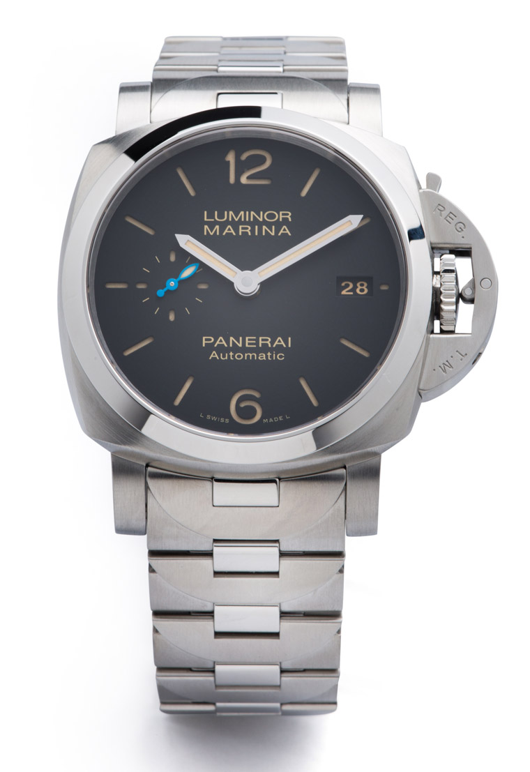 PAM00722/不鏽鋼材質/P. 9010自動上鍊機芯/時、分、小秒、日期顯示/藍寶石水晶鏡面、透明底蓋/防水100米/錶徑42mm/參考價:NT$ 262,000