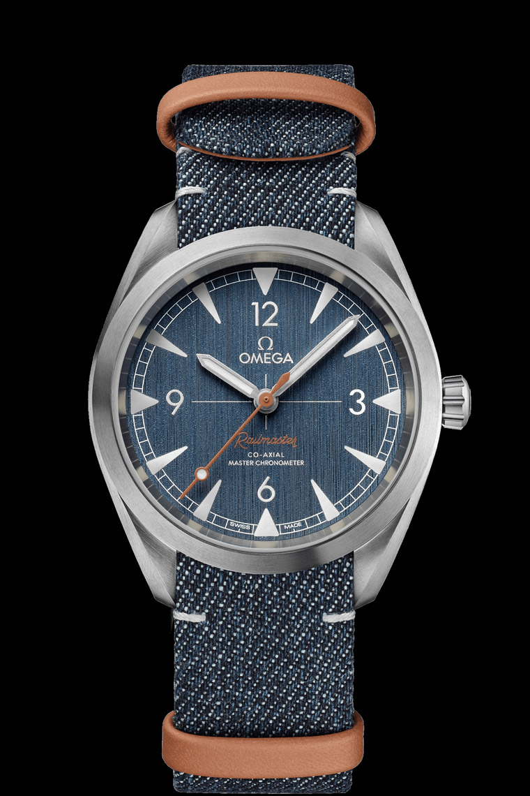 ▲歐米茄Railmaster鐵霸腕錶近期推出藍色牛仔褲新款,靈感正是來自鐵路工人所穿著的耐用牛仔褲。