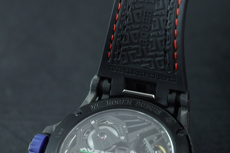 近年來消費者的個人意志高漲,追求個性化成了市場的一門顯學,而通常腕錶最能提供錶主靈活更換、展現個人色彩的零件則非錶帶莫屬,過往要換錶帶需有特殊工具或請專人協助,但近年不少錶廠紛紛研發出不需工具、錶主自己就能輕鬆操作的錶帶快拆系統,讓佩戴者隨時都可以幫愛錶換上不同顏色或材質的錶帶。不讓其他錶廠專美於前,Excalibur Aventador S藍色腕錶同樣具備了錶帶快拆設計;它的快拆設計是將錶帶的扣榫按壓裝置設於錶帶背面,佩戴者只需先按壓扣榫再將扣榫連同錶帶垂直拉起即完成了拆卸動作(組裝更容易,只要把扣榫對準軌道垂直壓下聽到固定聲響後便大功告成)。羅杰杜彼甚至連錶扣都一併加入快拆設計,方便又快速的組合模式不只提供了錶主更靈活的搭配性,某方面而言,此舉也增加了戴錶的樂趣,甚至也有助於腕錶的日常清潔便利性亦且更能妥善安置保管,可以說是一舉數得的先進概念。