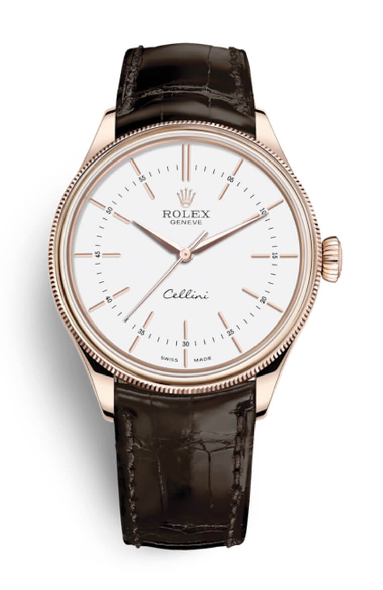 現代版Cellini系列2014年初出時一口氣就推出了三種款式,除了最基本的三針款Cellini Time,還有像是Cellini Date具備日期顯示,勞力士於面盤3點方向採用典雅的指針式日期設計;而Cellini Dual Time則擁有兩地時間顯示,在6點的小錶盤以12小時制的時針與分針顯示第二時區時間,面盤9點鐘位置更搭配太陽與月亮圖案做為第二地時間的日夜顯示,看起來更直覺易懂。由於勞力士對於自家正裝錶的市場接受度也還在持續觀望中,因此幾年下來並沒有太急進地大量發表新款,目前為止也僅在2017年新添具有月相顯示的Cellini Moonphase——這可是品牌自1953年後再出現月相功能的作品,對現代的勞力士手錶而言顯得相當稀奇而有話題性,一上市之後便躍升成Cellini系列最讓人想入手的口袋名單。