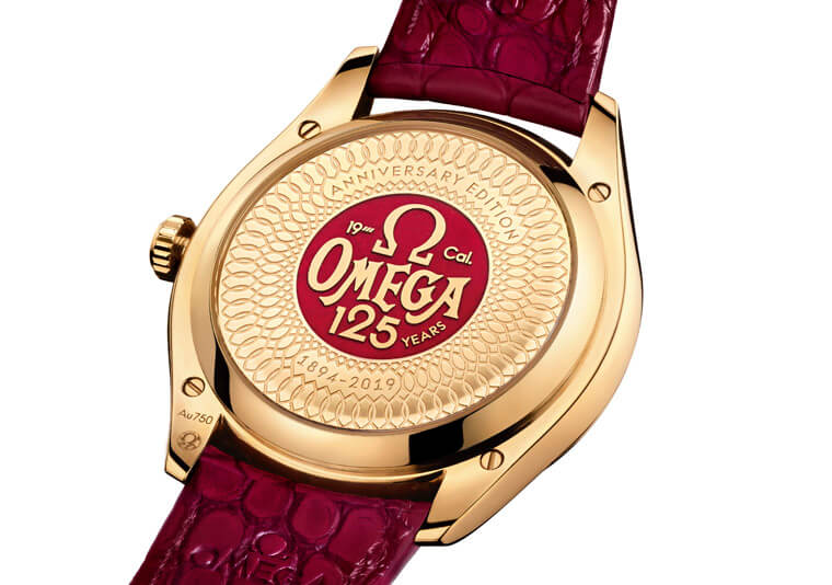 碟飛Trésor 125週年紀念錶的錶背為實底蓋設計,中央鑲有一枚填入黃色琺瑯的黃金徽章,而在徽章周遭也會看見連環交錯的日內瓦波紋,以此呼應新生19法分機芯的裝飾圖案。值得一提的是,碟飛Trésor 125週年紀念錶搭載的是OMEGA全新創作的8929大師天文台機芯,它的擺輪橋板有別於其他機芯板件材質而特地使用高貴的貴金屬打造,而既然通過了大師天文台認證,代表8929機芯的抗磁能力一樣達到15,000高斯的水準,同時它也是大師天文台系列機芯開發以來首見的手上鍊機芯作品,除了紀念OMEGA機芯推出125週年的意義,錶款本身的多項創新設計也相當具有紀念價值。