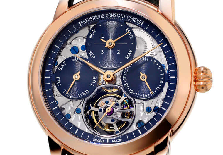 FREDERIQUE CONSTANT康斯登玫瑰金自製萬年曆陀飛輪以台幣99萬8000元的定價再創親民價位,造福錶迷,絕對值得入手。但雖然看起來是破盤價,在我看來絕非降低品質,而是品牌降低獲利,以合理價位分享消費者,這才是負責任的做法。