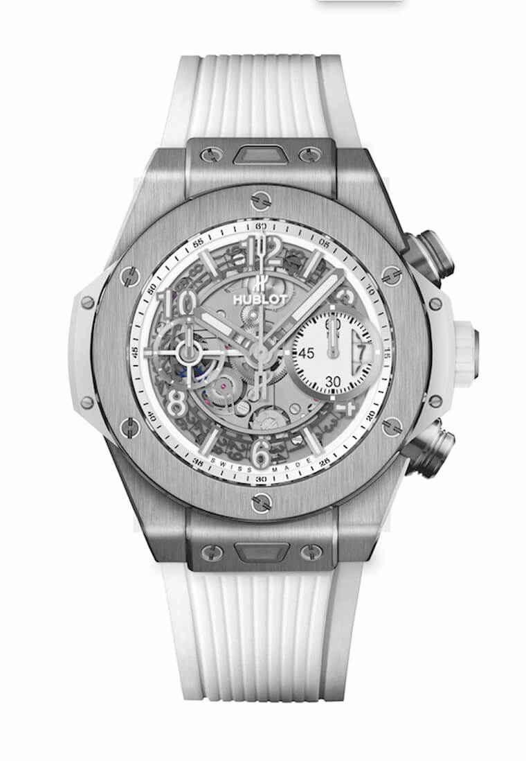 鈦金屬材質/HUB1242 UNICO自動上鍊機芯/時、分、小秒、日期顯示/計時碼錶功能/藍寶石水晶鏡面/防水100米/錶徑45mm/限量100只/參考價:NT$ 749,000