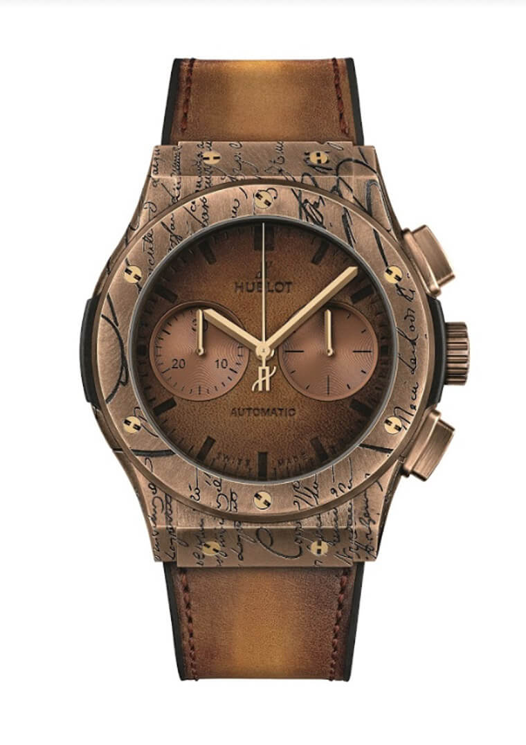 青銅材質/ HUB1143自動上鍊機芯/時、分、小秒顯示/計時碼錶功能/藍寶石水晶鏡面/防水50米/錶徑45mm/限量200只/參考價:NT$ 651,000