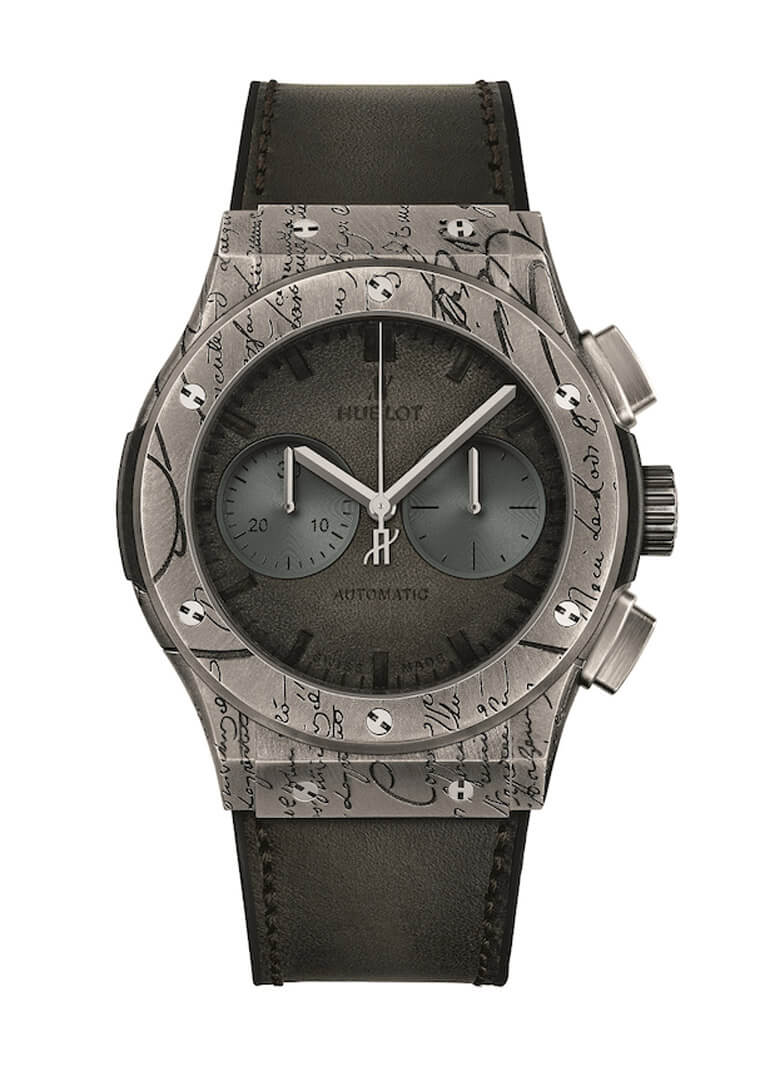 鈦金屬材質/ HUB1143自動上鍊機芯/時、分、小秒顯示/計時碼錶功能/藍寶石水晶鏡面/防水50米/錶徑45mm/限量200只/參考價:NT$ 651,000