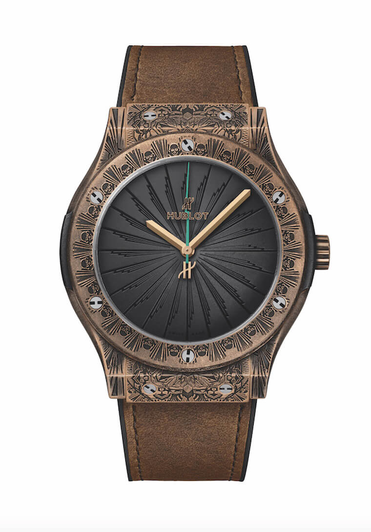 青銅材質/HUB1100自動上鍊機芯/時、分、秒顯示/藍寶石水晶鏡面/防水50米/錶徑45mm/限量100只/參考價:NT$ 520,000