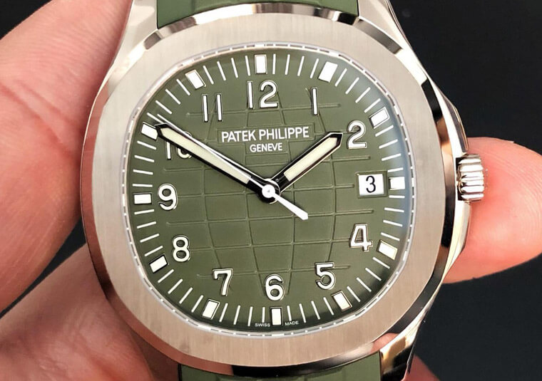 百達翡麗的Aquanaut算是品牌旗下比金鷹系列更容易入手的運動錶作品,其中當然基本款的鋼殼頗受到市場喜愛,不過鋼殼無論搭配膠帶或是鍊帶的款式,目前都只有黑面,相對的價位較高的貴金屬款,面盤配色反而還比較多元,例如玫瑰金款有巧克力面、先前PP因應Aquanaut 20週年推出的白金款更是有一張俊俏的漸層藍面,2019年錶王再度推出新款的Aquanaut 5168,這次品牌嶄新換上系列首見的卡其綠色,稍微顛覆了錶王的成熟內斂印象,展現出另一種年輕活力。