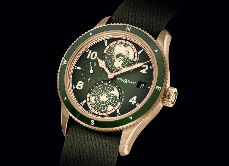 青銅材質/MB 29.25自動上鍊機芯/時、分、日期顯示/南北半球時間顯示/兩地時間顯示/藍寶石水晶鏡面/防水100米/錶徑42mm/限量1858只/參考價:約NT$ 205,800