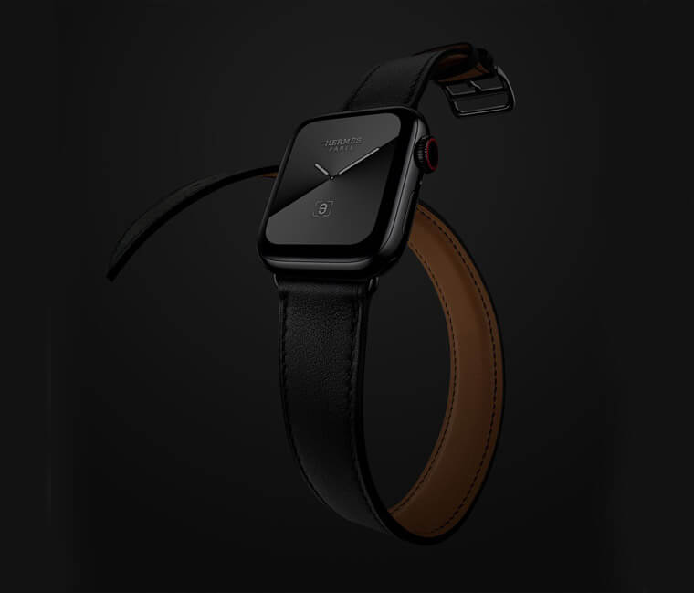 ▲全新Apple Watch Hermès子系列主打黑之藝主題,其採用太空黑色不鏽鋼錶殼搭配黑色Swift皮革錶帶,展示時尚俐落風格。