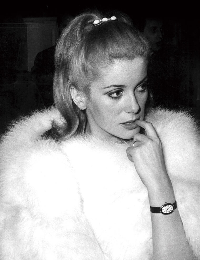 ▲Baignoire腕錶推出不久便憑著出眾又獨特的設計擄獲知性女性的喜愛,如活躍於20世紀中期的法國女星Catherine Deneuve就是此作的忠實擁護者之一。