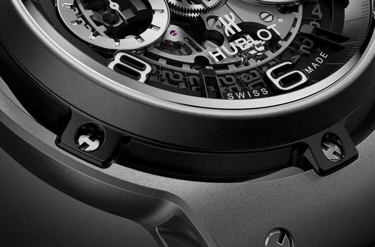 ▲除了錶冠、按把周邊的結構,邊緣的四顆螺絲是外框和內殼間唯一的聯繫,附帶一提,這裡的H字螺絲恐怕也是錶款跟Big Bang唯一的關聯。除此之外沒做錶帶快拆是這款少數令人意外的一點。