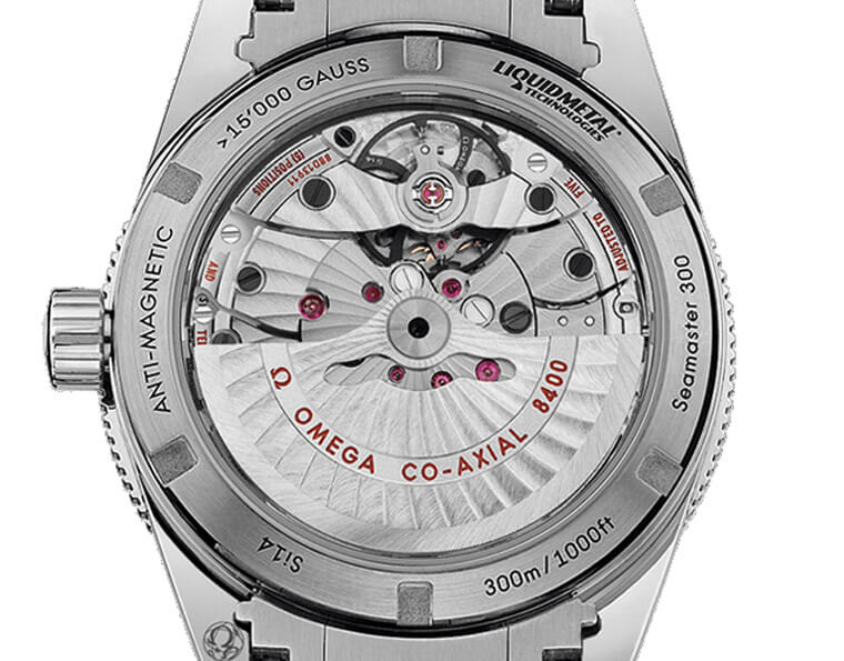 ▲搭載的8400機芯導入了超強抗磁技術,將擺輪軸心等著磁後會影響走時的部件都換成抗磁素材,目前OMEGA將這項技術命名為"Master Co-axial"。
