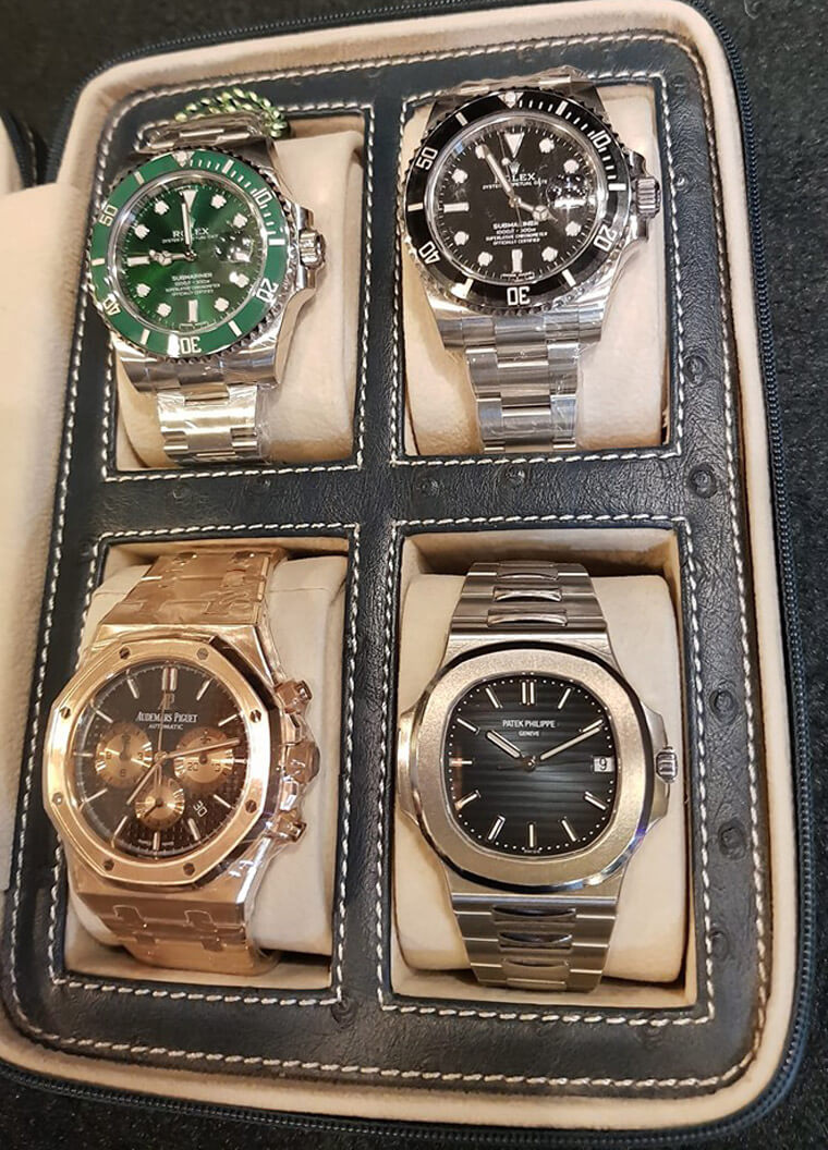 如圖中所見,Roger這位朋友的錶盒裡面有綠水鬼116610LV、黑水鬼116610LN、AP的皇家橡樹計時碼錶和百達翡麗的金鷹5711,單就任何一只而言都是大家很感興趣的A+級熱門錶,何況還是同時擁有這些錶,看到這畫面不禁讓小編想到了薩諾斯的無限手套,似乎該有的都有了,而從手錶上的膠膜都還包得好好的情況看來,這位收藏家應該也是收藏目的大於實用,錶盒裡面每顆無限寶石(誤)的狀況都很好,如果想要轉手應該都可以回收到高於當初入手的價格,不過照現在運動錶應該還會繼續火熱下去的情況看來,或許好好收藏它們將來更有戲唱;只能說每個年代市場喜好的手錶類型和風格不會總是一成不變的,如何找到自己所愛,並且懂得欣賞不是自己天菜的錶——例如像Roger這樣,身為機芯控但偶爾也會入手一些實用運動錶,保持開放的態度看待錶海裡的不同作品,相信能讓自己的玩錶人生更開闊也更有樂趣。最後小編還是在想無限手套的事,不知道大家心中最想要用哪五只錶來填滿自己的無限手套呢?歡迎在世界腕錶的臉書粉絲團跟我們分享你的想法。