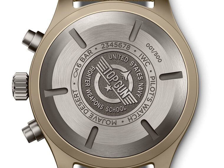 ▲雖然裝上了自製機芯,但秉持著飛行員系列一貫的傳統,這款同樣沒做透明底蓋,取而代之的是配備了抗磁的軟鐵內殼。鈦金屬的底蓋上刻有Top Gun的Logo和流水編號,限量500只。