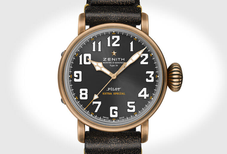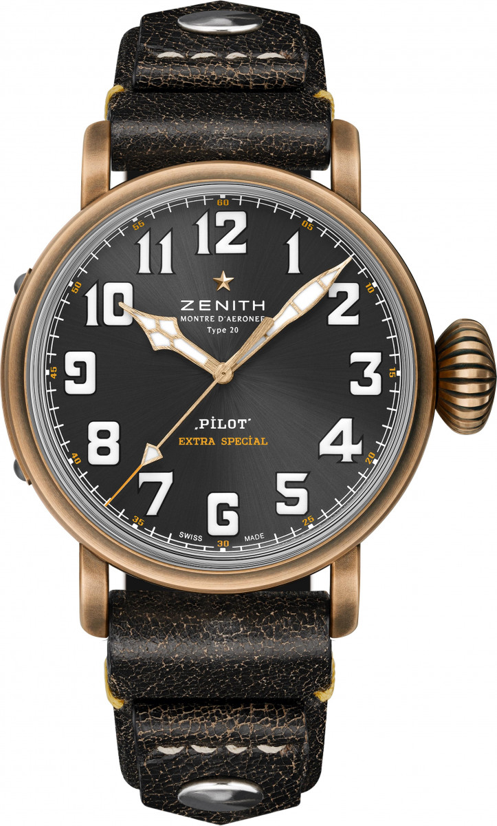 這款獨一無二的作品採用青銅錶殼搭配不鏽鋼底蓋,底蓋上鐫刻有救援澳洲叢林大火的加拿大龐巴迪CL-415消防飛機圖騰,此機種乃是專用於消防滅火的水陸兩棲飛機。岩灰色陽光放射紋面盤,搭配 Super-LumiNova®夜光塗料的超大型阿拉伯數字,巧妙結合時尚現代外觀和獨特復古魅力。黃色是飛機領域中經常出現的一種顏色,傳達人們對於重要飛行訊息的關注。手錶採用復古黑色小牛皮錶帶,讓人聯想起經典的羊毛飛行夾克。搭配的鈦金屬針扣與獨特的設計標誌,靈感則來自老式飛行員頭盔上的元素。